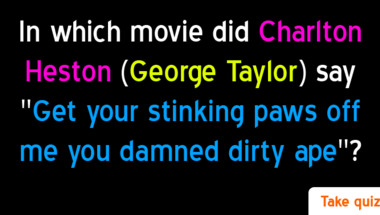6/10 is what people on average are scoring in this trivia quiz so far. Are you ready to answer questions like "In which movie did Charlton Heston (George Taylor) say "Get your stinking paws off me.." and "In which movie did Anthony Perkins (Norman Bates) say "A boy's best friend is his mot.."
