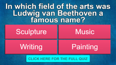 6/10 is what people on average are scoring in this trivia quiz so far. Are you ready to answer questions like "In which field of the arts was Ludwig van Beethoven a famous name?" and "Which of these was the last US state to be entered into the union?"