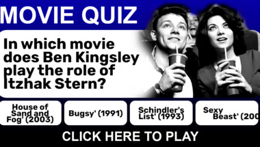Look forward to questions like ""An Adventure 65 Million Years In The Making." is the tagline from which 1990's block.." and "In which movie does Ben Kingsley play the role of Itzhak Stern?"