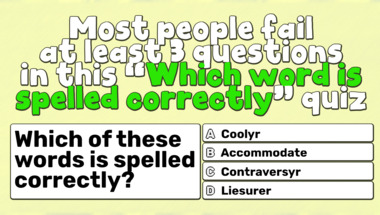 7/10 is the score to beat in this trivia quiz to put yourself over the average quiz taker. But you're probably going to be able to answer questions "Which of these words is spelled correctly?" and "Which of these words is spelled correctly?" easy!