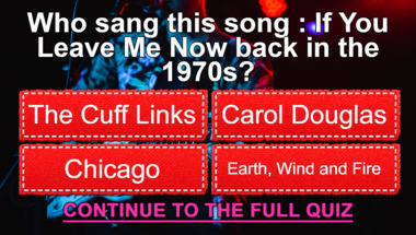 6/10 is what people on average are scoring in this trivia quiz so far. Are you ready to answer questions like "Who sang this song : "Can't Smile Without You" back in the 1970s?" and "Who sang this song : "Laughter In the Rain" back in the 1970s?"