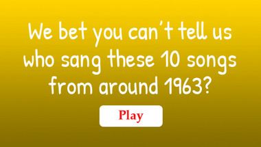 4/10 is what people on average are scoring in this trivia quiz so far. Are you ready to answer questions like "Who did we see on the 1963 hit list with "The Twist"?" and "Who did we see on the 1963 hit list with "Everybody Loves Me But You"?"