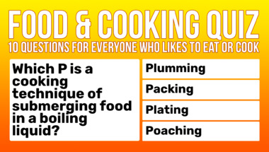 6/10 is what people on average are scoring in this trivia quiz so far. Are you ready to answer questions like "Which P is a cooking technique of submerging food in a boiling liquid?" and "What word means dousing something in alcohol and setting it alight?"
