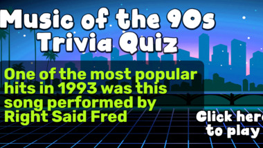 6/10 is the score to beat in this 1990s Hits quiz to put yourself over the average quiz taker. But you're probably going to be able to answer questions "Do you remember which song Cher had a hit with in 1990?" and "One of the most popular hits in 1993 was this song performed by Right Said Fred" easy!