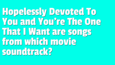 6/10 is the score to beat in this Movie quiz to put yourself over the average quiz taker. But you're probably going to be able to answer questions "Which actor played Indiana Jones in Raiders of the Lost Ark?" and "Hopelessly Devoted To You and You're The One That I Want are songs from which movie s.." easy!